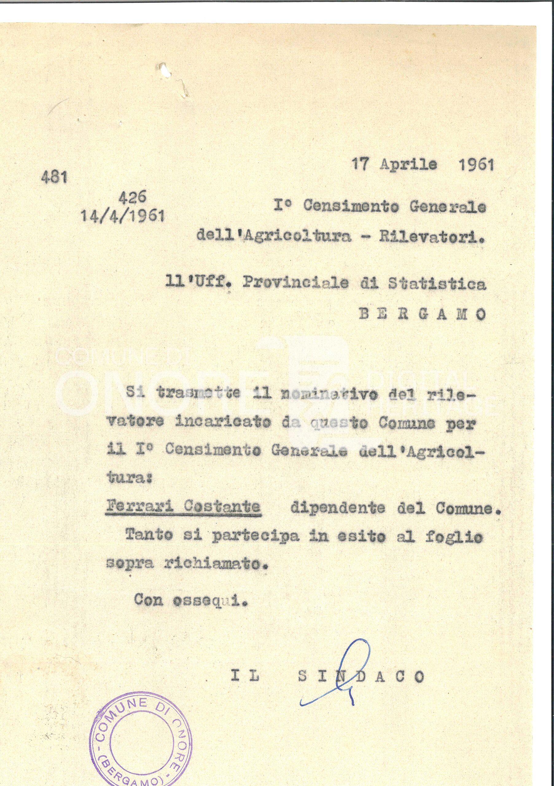 1° censimento Generale della Agricoltura – Rilevatori