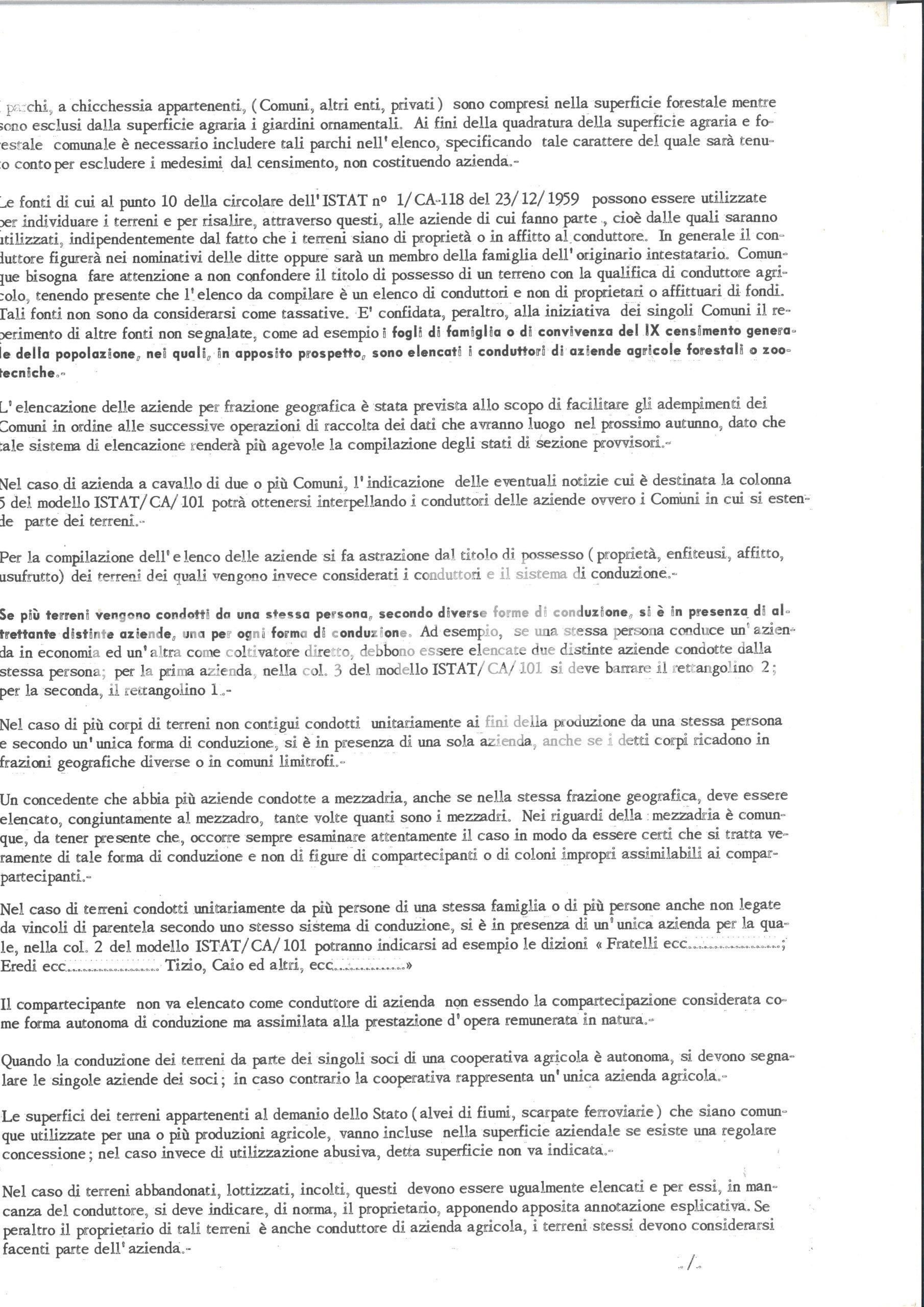 1° Censimento generale dell’agricoltura – chiarimento ai vari quesiti