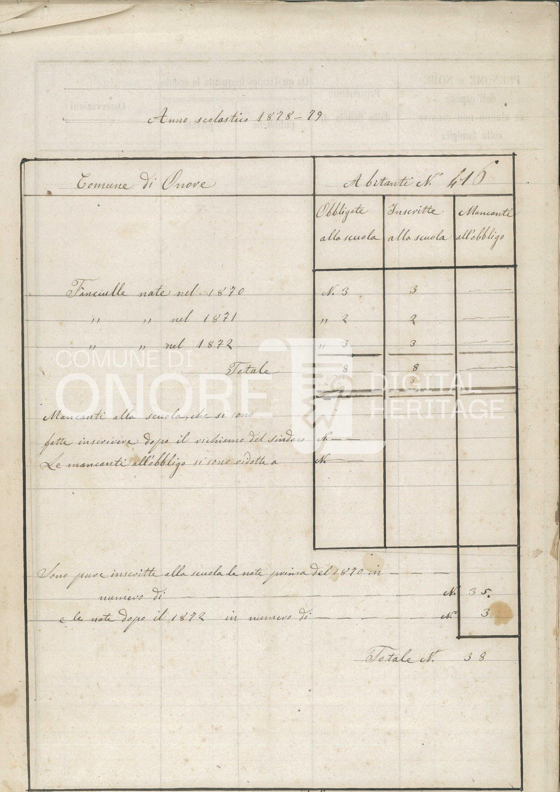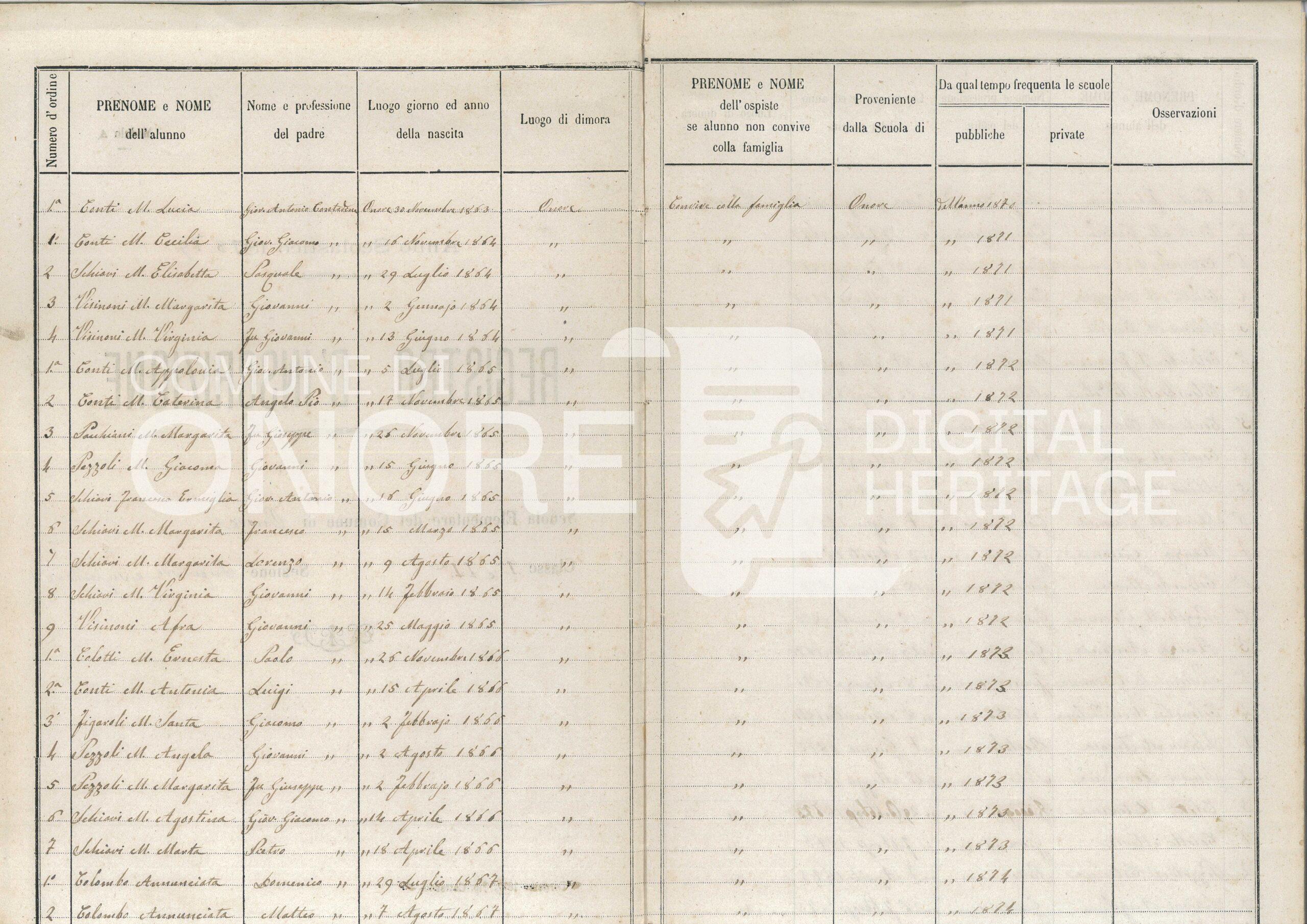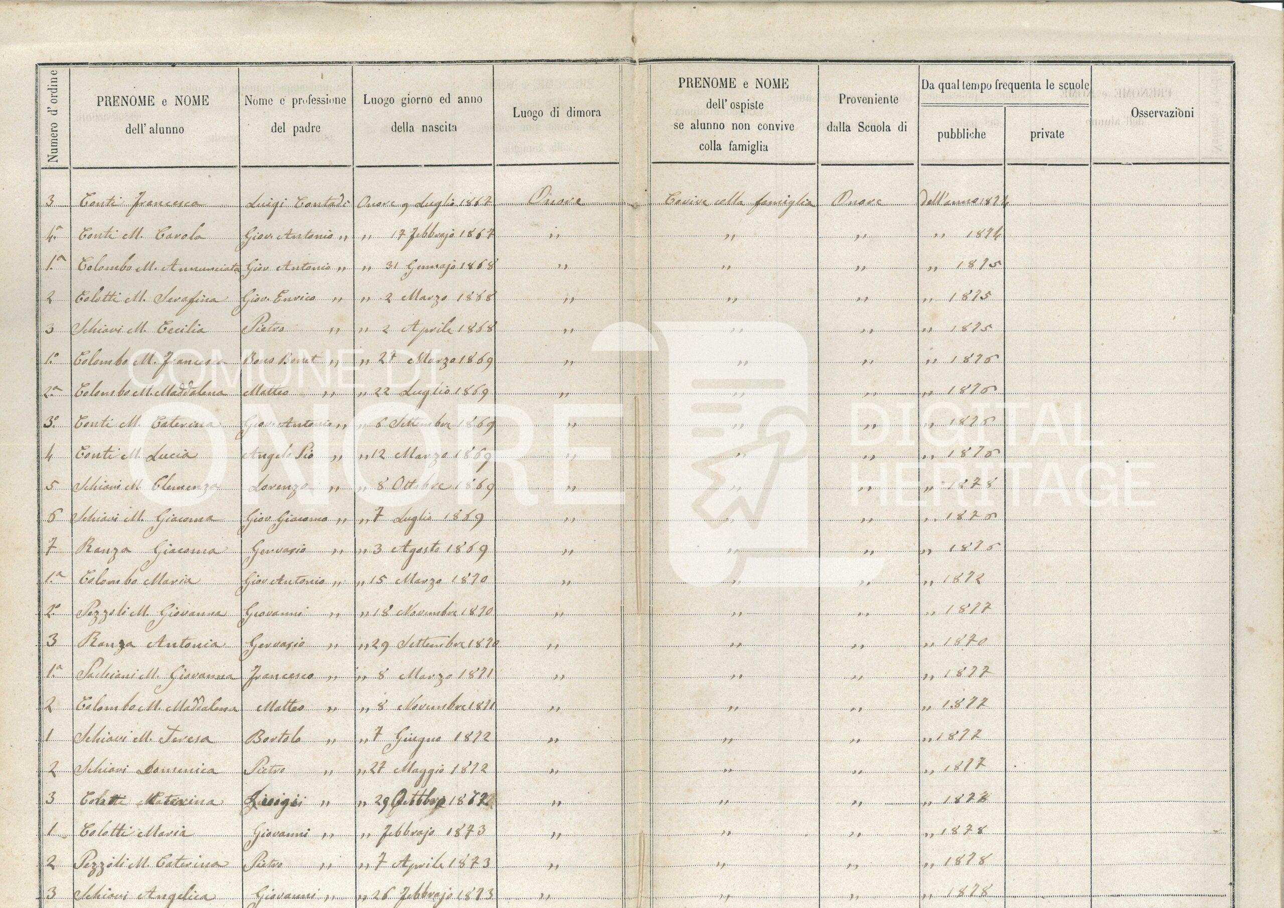Anno scolastico 1878-79 Registro d’iscrizione