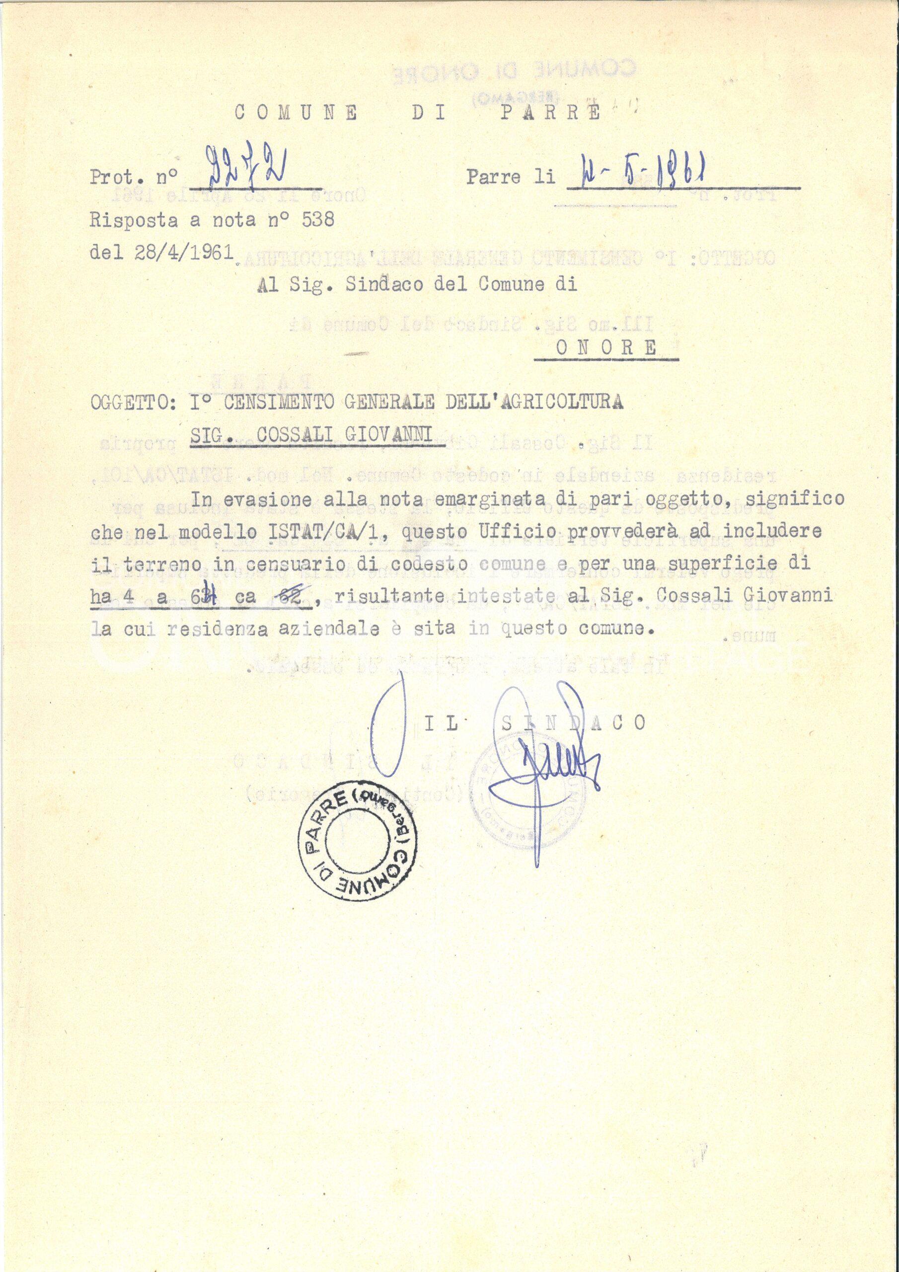 Comunicazione al Sindaco del Comune di Parre e risposta a nota 538
