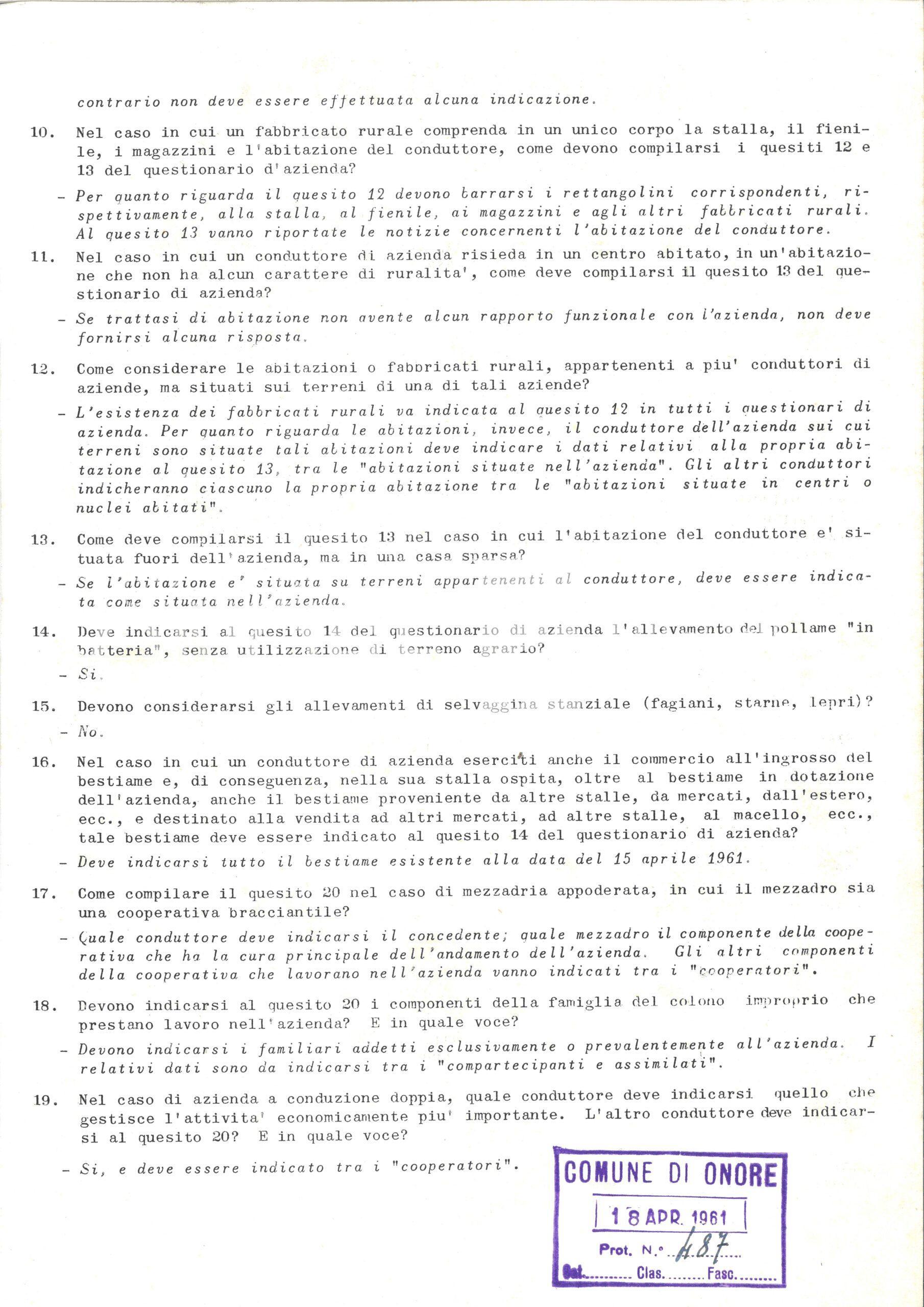 Risoluzione di quesiti concernenti il 1° censimento generale dell’agricoltura