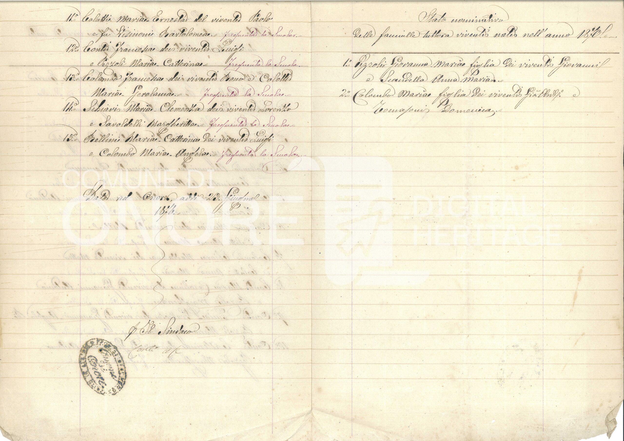 Manoscritto – stato nominativo delle fanciulle tuttora viventi