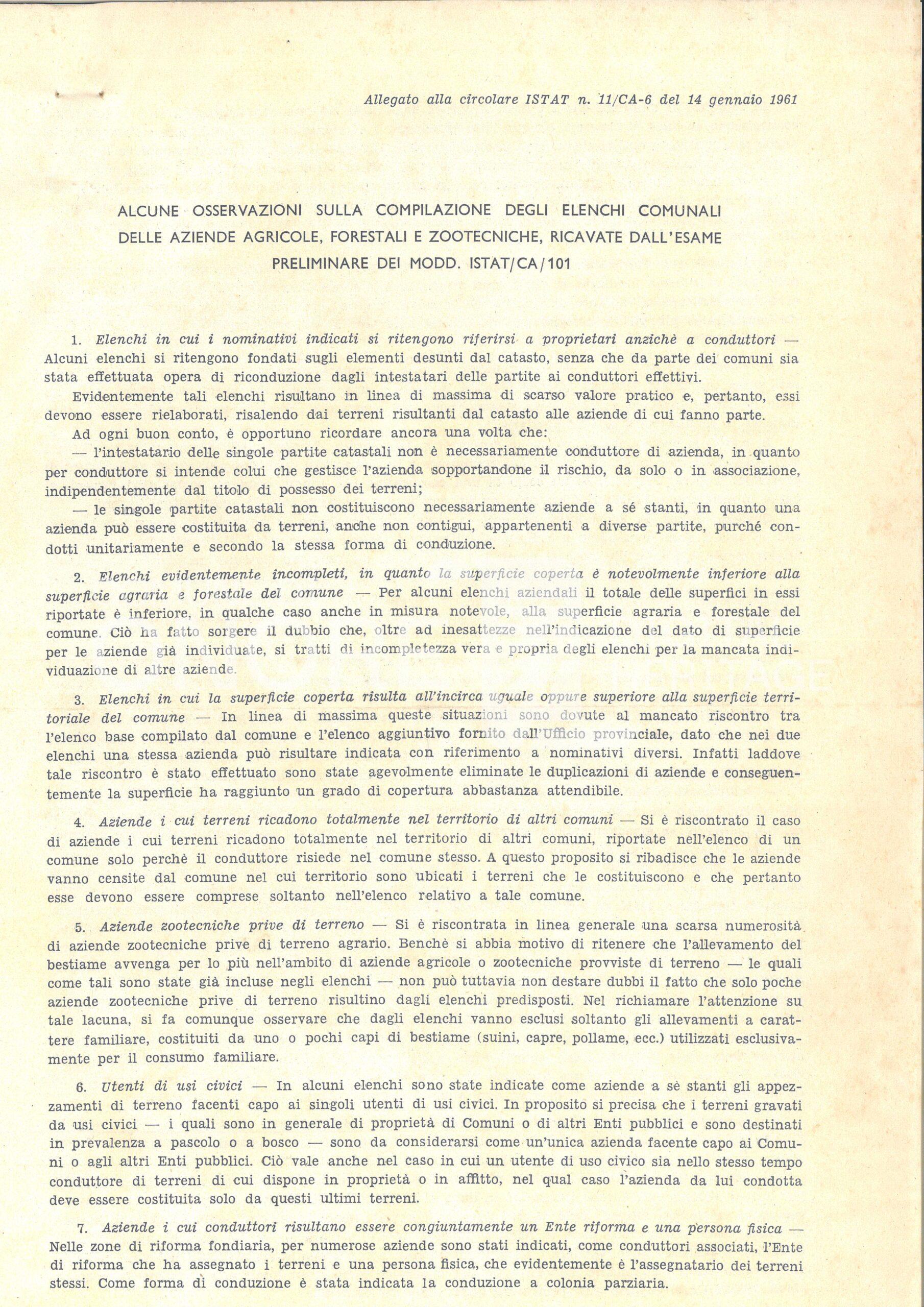 Censimento generale dell’agricoltura – Perfezionamento e aggiornamento degli elenchi comunali delle aziende agricole, forestali e zootecniche