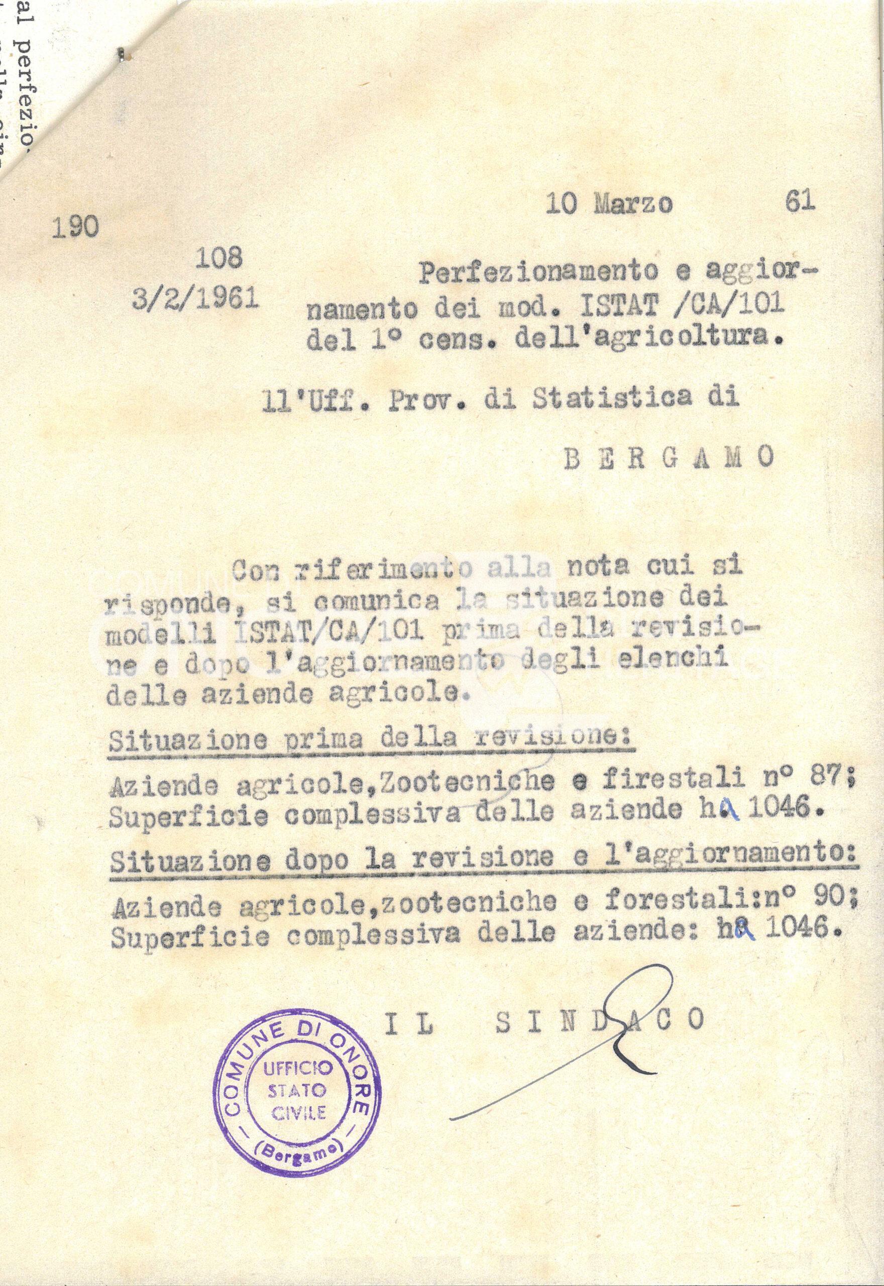 1° censimento generale dell’agricoltura – Perfezionamento e aggiornamento dei modelli Istat/CA/101