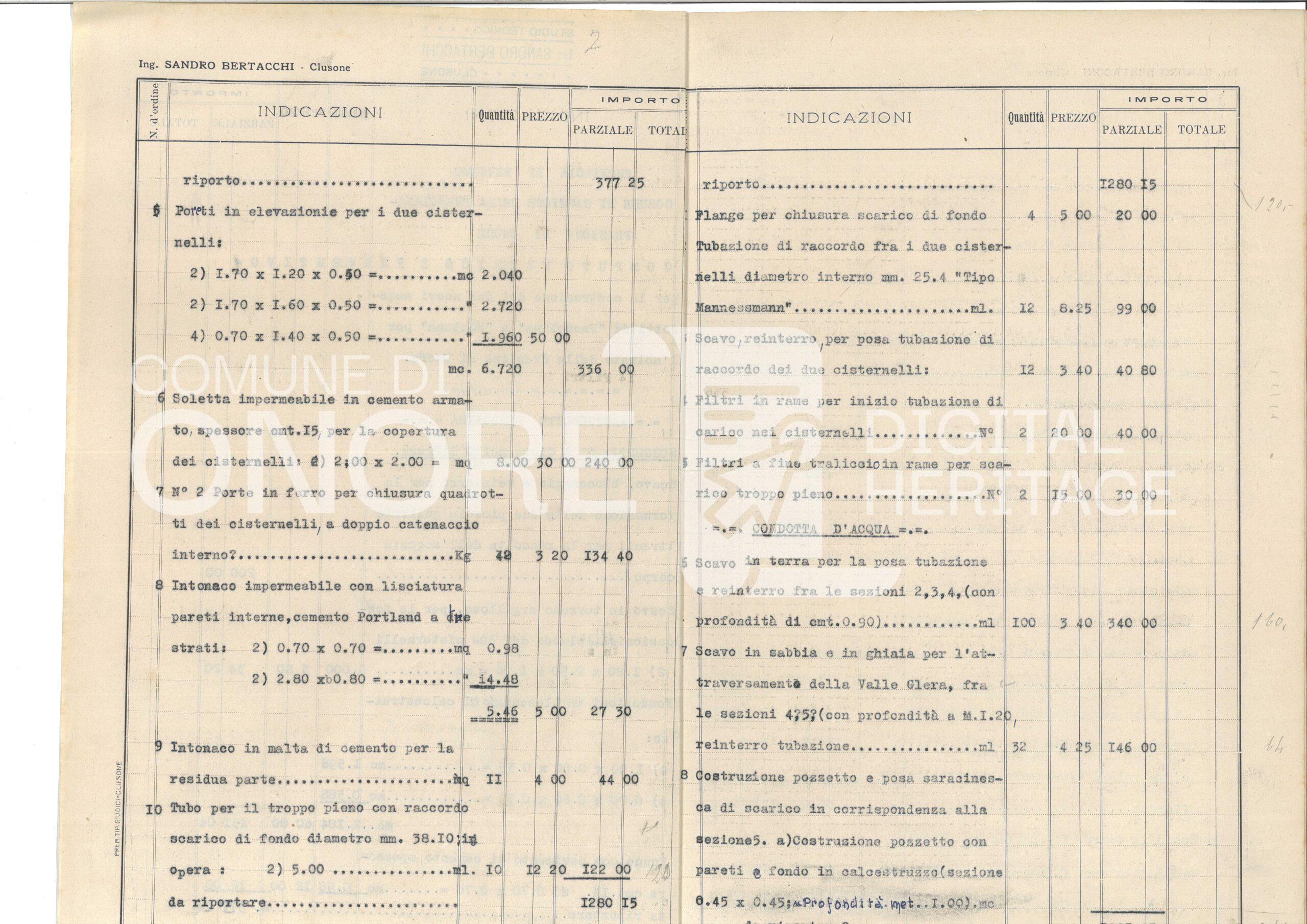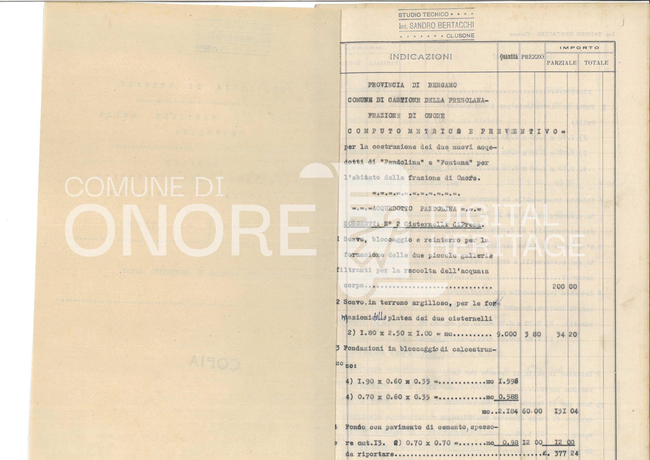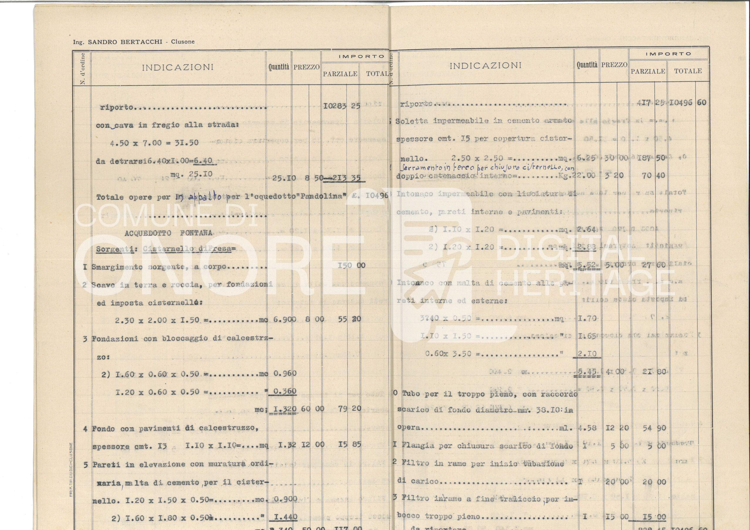 Progetto Acquedotti Padolina e Fontana – Computo metrico e preventivo spese