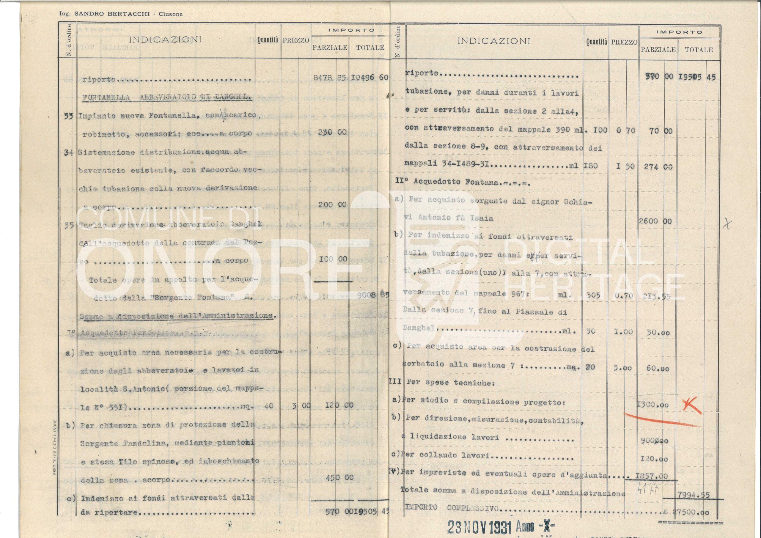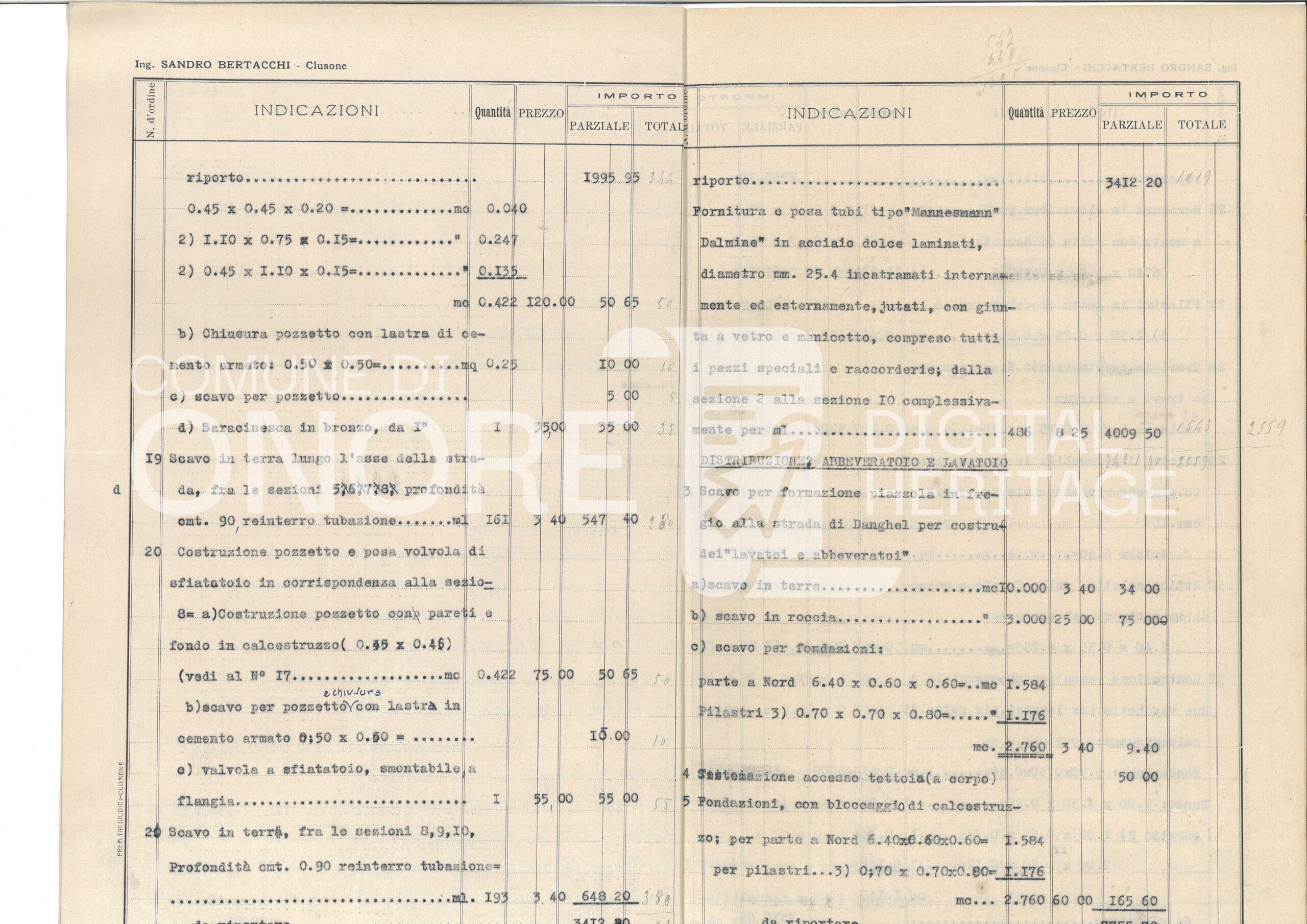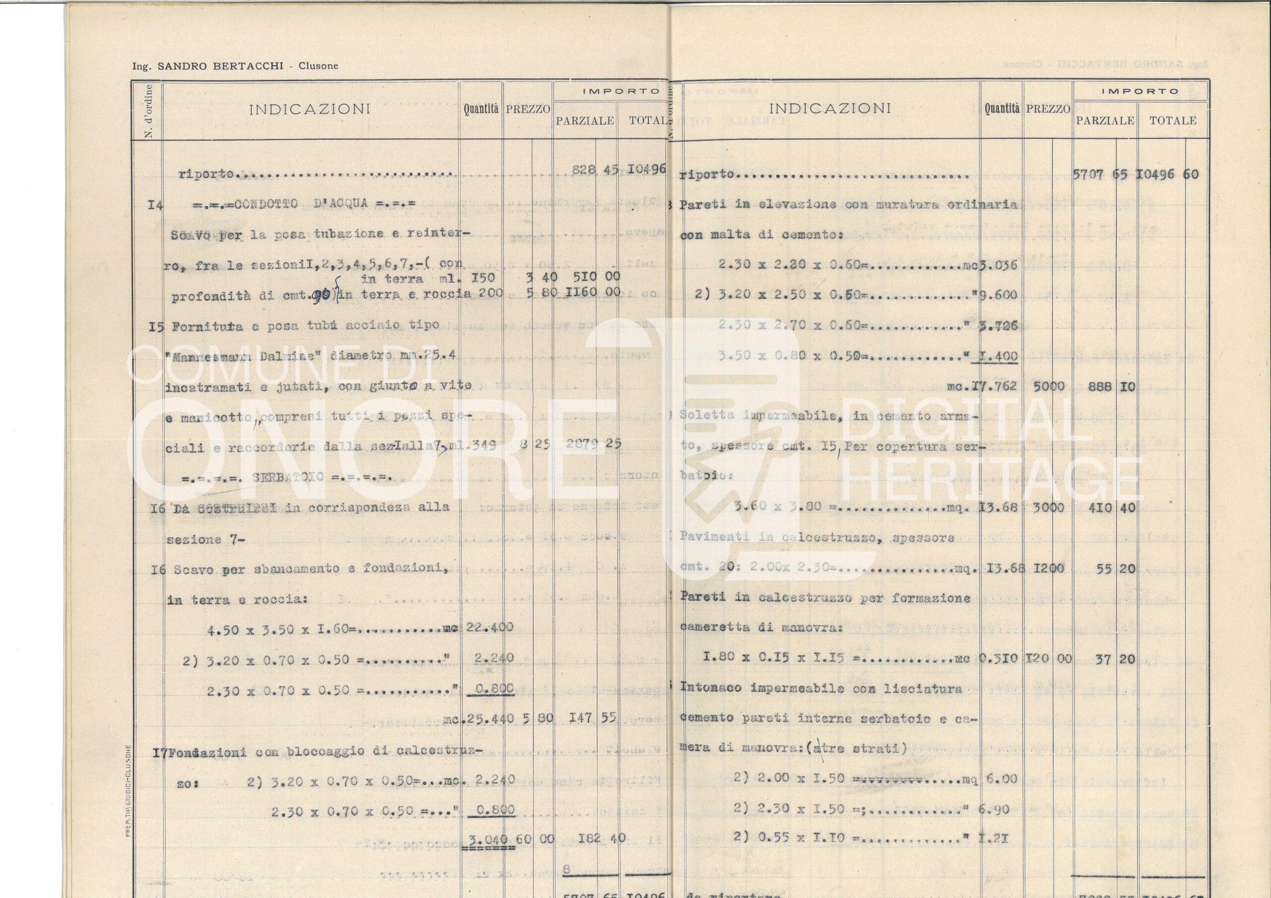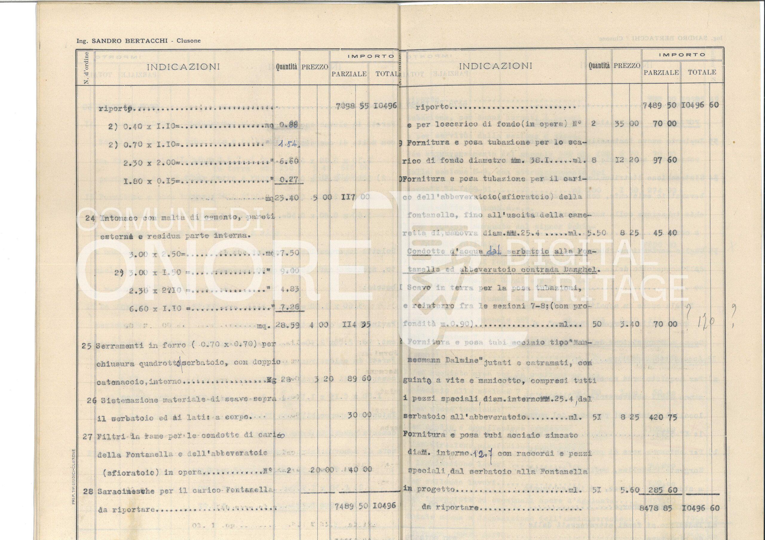 Progetto Acquedotti Padolina e Fontana – Computo metrico e preventivo spese