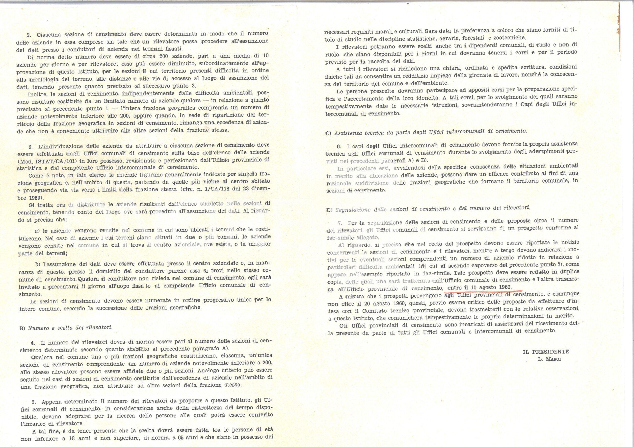 Censimento generale dell’agricoltura – ripartizione del territorio comunale in sezioni di censimento. Scelta dei rilevatori